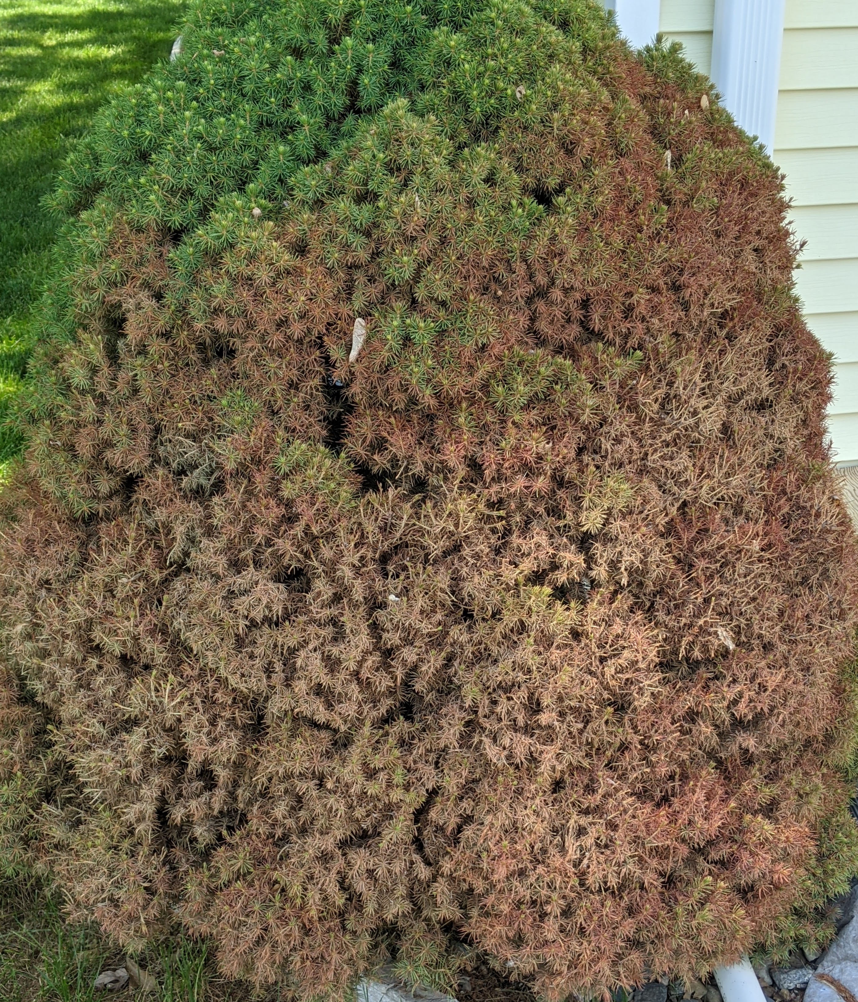 Ornamental Evergreens: Looked at and received a number of calls regarding ornamental evergreens such as the ‘Fat Albert’ varieties turning brown/purple/pink on the south sides. Winter injury is showing up on them. All the trees I looked at had had heavy spidermite pressure at one time as well. The spidermites may have been a secondary problem with the additional tree stress. Fortunately, most trees I looked at had new buds appearing on twig tips. The discolored and dead needles won’t be replaced. For these small trees/bushes, you can use heavy streams of water to remove spidermites that are still active on trees. Watering (but not overwatering) can also help with their recovery.