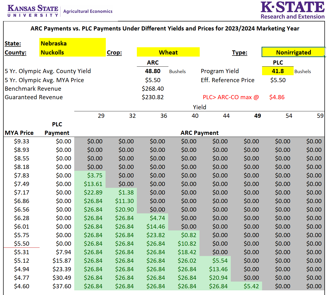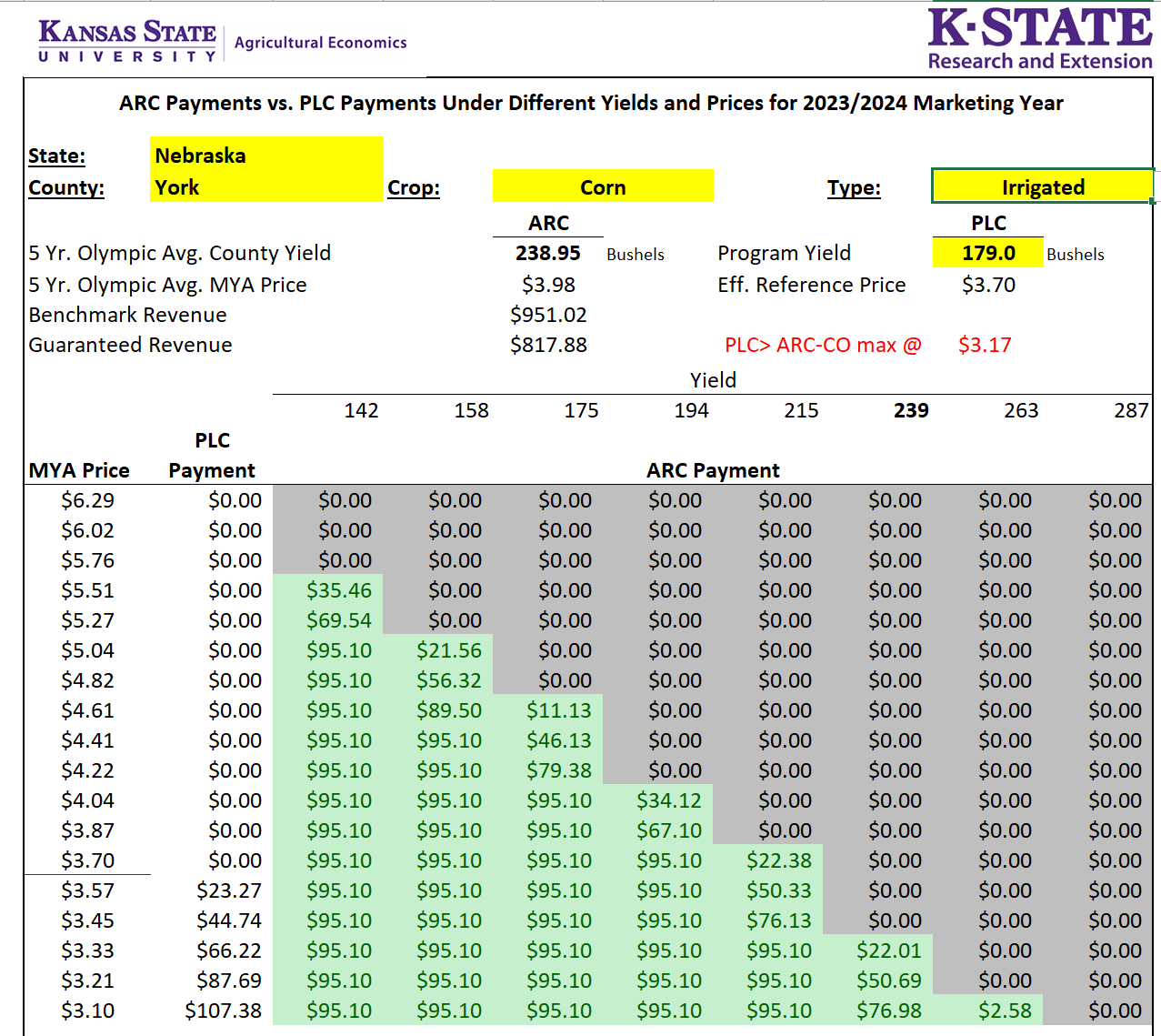 - K-State spreadsheet tool: https://www.agmanager.info/ag-policy/2018-farm-bill/tradeoff-between-20222023-arc-and-plc