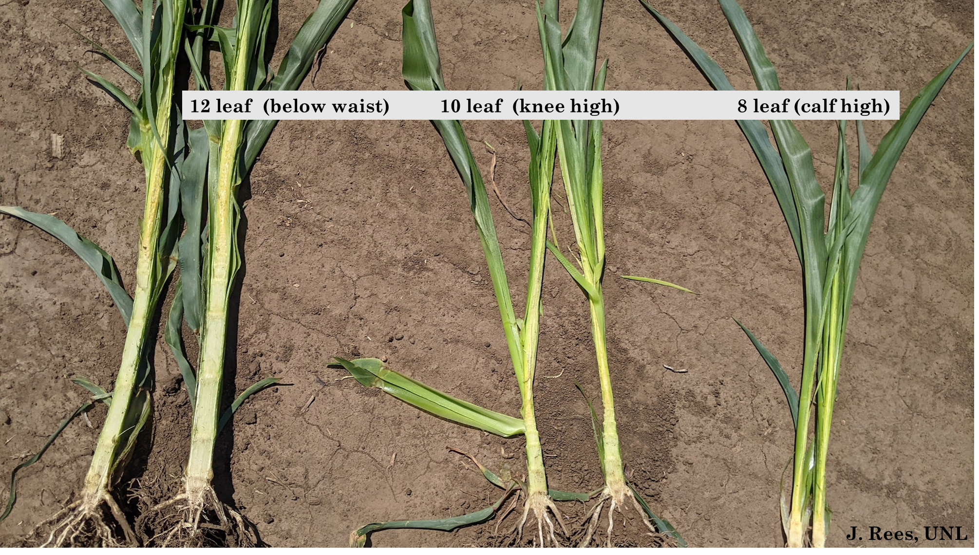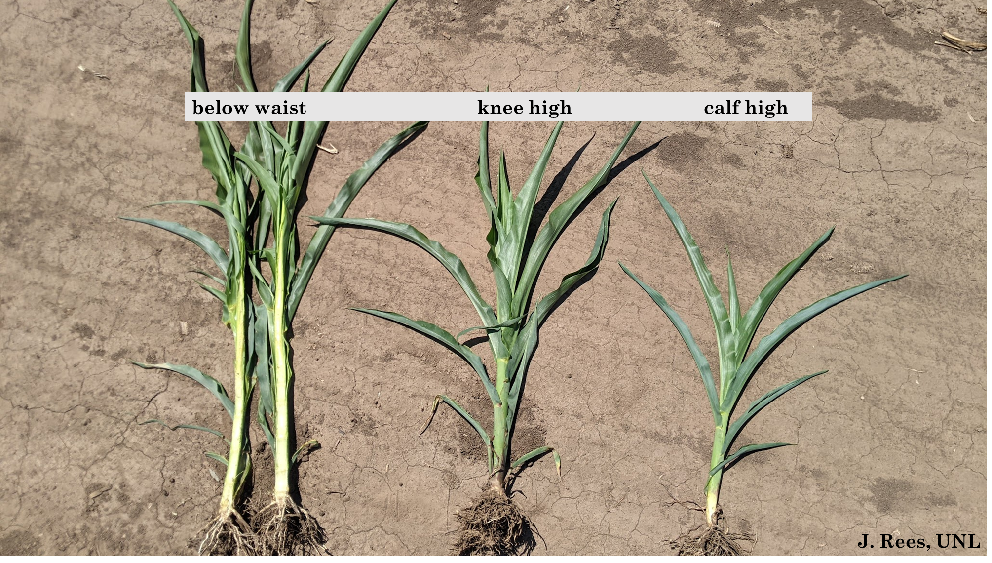 A tale of three corn plants from the same non-irrigated drought-stressed field that were rolled for well over 20 days. These are heights on me so much shorter for all you taller individuals!