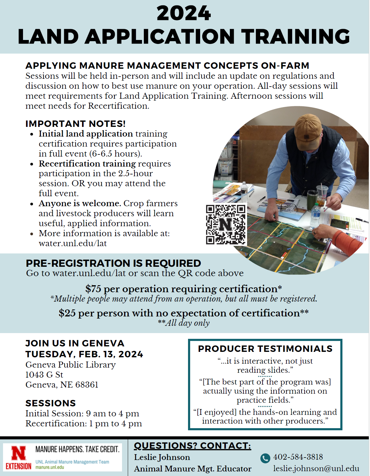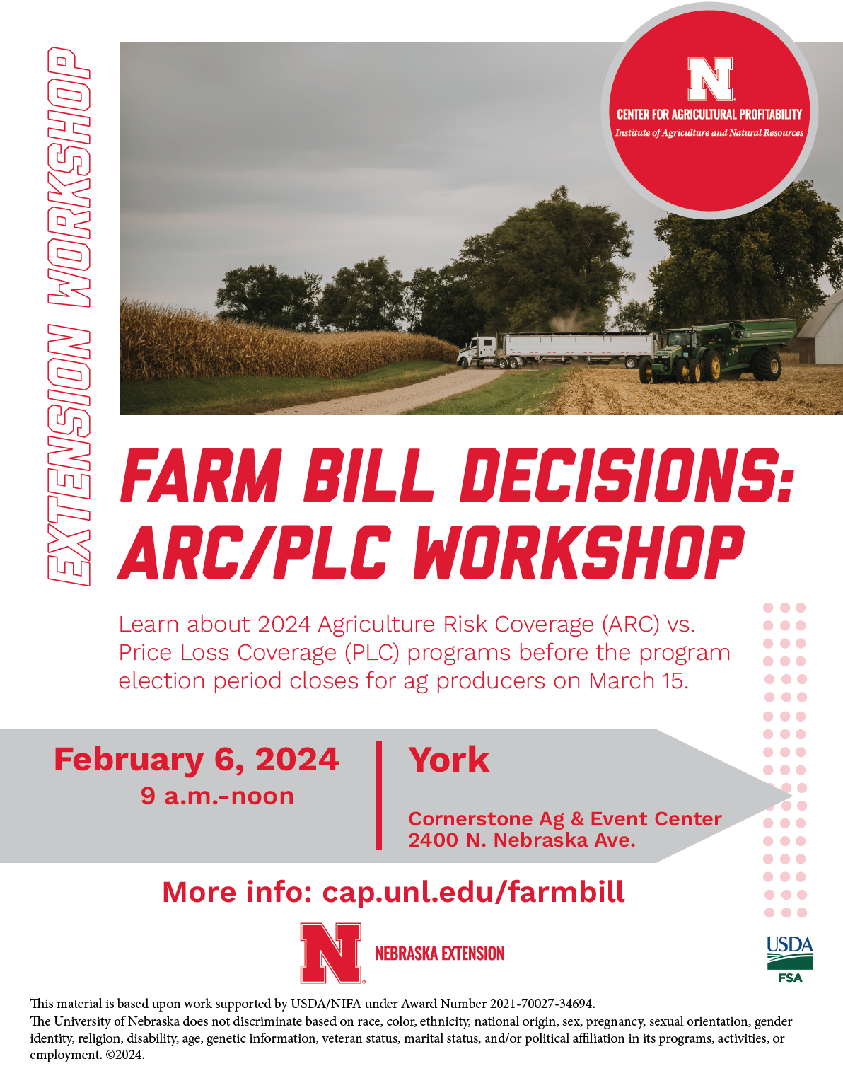 Returning to the Farm is a workshop series for families who are in the transition process of bringing members back to the farm or ranch. It’s one of the more important programs Extension offers and I can say it was helpful for me and my family to attend. It will begin with a two-day workshop in Kearney for multi-generational families on March 8 and 9 at the office of Nebraska Extension in Buffalo County, 1400 E 34th St. The series assists families and agricultural operations with developing financial plans and successful working arrangements to meet their unique needs. It will guide families in developing estate and transition plans, setting personal and professional goals, and improving the communication process between family members. The workshop fee is $75 per person on or before March 1. March 2, the fee increases to $85 per person. Registration includes dinner on March 8 and lunch on March 9; it also includes two follow-up virtual workshops. More info. and registration at: https://cap.unl.edu/rtf24.