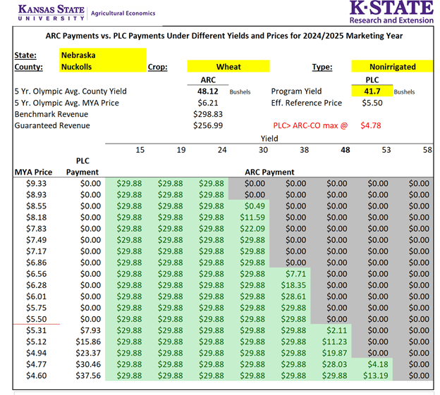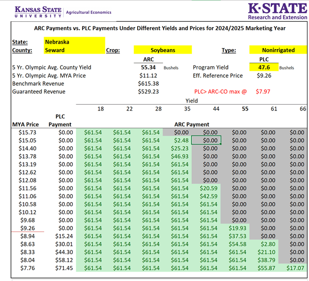 K-State Ag Manager Excel Spreadsheet Tool (download and run for your specific county/crop info.): https://agmanager.info/ag-policy/2018-farm-bill/tradeoff-between-20242025-arc-and-plc