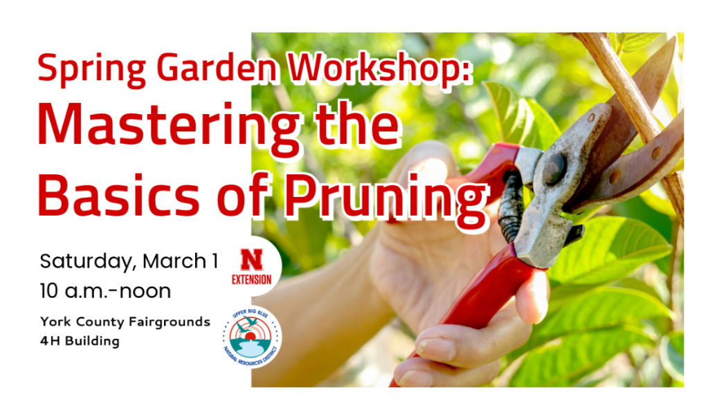 Join Sarah Browning Saturday, March 1, for the NRD’s annual Spring Gardening Workshop. The topic will be Mastering the Basics of Pruning. The free class will be held at the 4-H building at the York County Fairgrounds from 10 a.m. to noon. Walk-ins are welcome but pre-registration to 402-362-6601 is helpful for printing materials.