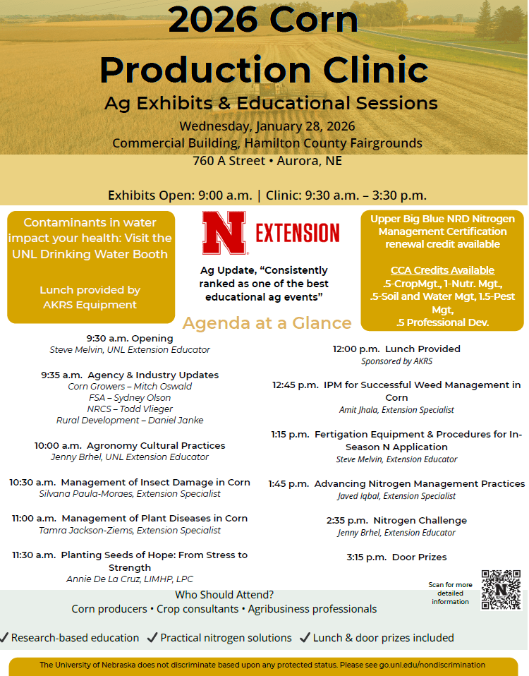 Last week was the kickstart to meeting season for me and it was great to see those of you at pesticide trainings and the Nitrogen Challenge meeting. For this column, I wanted to share a little more detail about the changes for this coming growing season regarding pesticide label language and requirements for the endangered species act (ESA) to mitigate drift and runoff. The information below came directly from a CropWatch article (https://go.unl.edu/skj7) written by Dr. Milos Zaric with UNL Agronomy, Greg Puckett with the UNL Pesticide Office, and Craig Romary with the Nebraska Dept. of Ag. Next week I will simplify this into specific steps to help you be in compliance for the 2026 growing season.