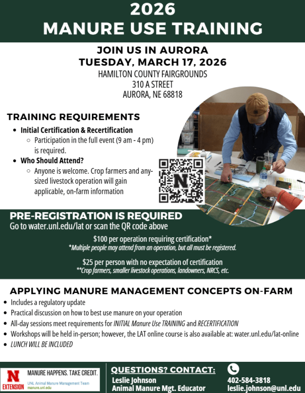 Richard Ferguson has retired after 40 years of service as a UNL Extension Soils Specialist and he will be greatly missed! His retirement celebration will be this Friday, March 20th from 2-4 p.m. at the Goodding Learning Center at UNL’s East campus. There’s also an online book for well-wishes at: https://go.unl.edu/ferguson-retire.