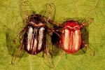 - Green June Beetle (left) and Japanese beetle (right). Photo via Purdue Entomology.