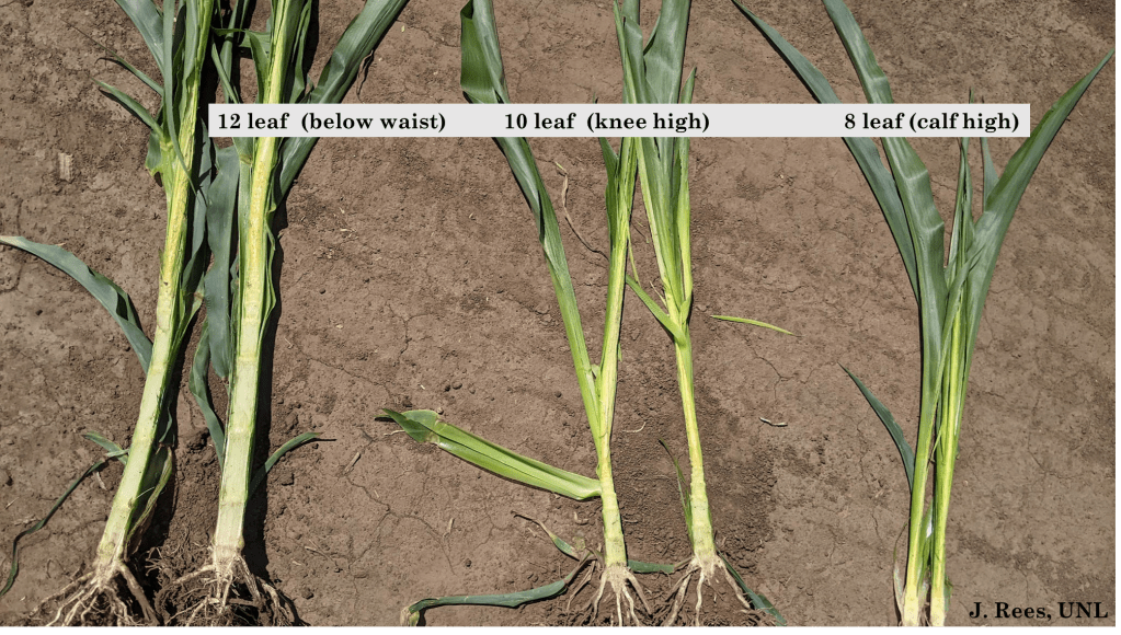 Drought: Several have asked about the yield potential of non-irrigated pivot corners if they were irrigated at this point. I don’t know if anyone really knows. This column reaches such a wide area. There’s part of the area I serve that I don’t think there’s any yield potential. For other places, my guess is ears wouldn’t be more than 4-8 rows around. I asked a plant breeder for his perspective. He shared it could be possible for 100-120 bu/ac with rain, depending on how long it had been rolled, and for corn further along (late vegetative stages). I’m seeing non-irrigated corn in most area drought-stressed fields are 4-7 leaf vs. 8-12 leaf in the pivot irrigated portion. The research I found says, from Emergence to 12 leaf corn, an estimated 1-3% yield loss occurs for each day after 4 consecutive days of stress. Some corn in the area has been rolled for nearly 18 days. Here’s some math for consideration if it can help (I’m going to use 20 days of stress). Let’s say you typically receive 180 bu/ac non-irrigated yield. 1% yield loss/day for 20 days would result in a loss of 36 bu/ac. A 2% yield loss/day for 20 days would result in a loss of 72 bu/ac and a 3% yield loss/day for 20 days would result in a loss of 108 bu/ac.