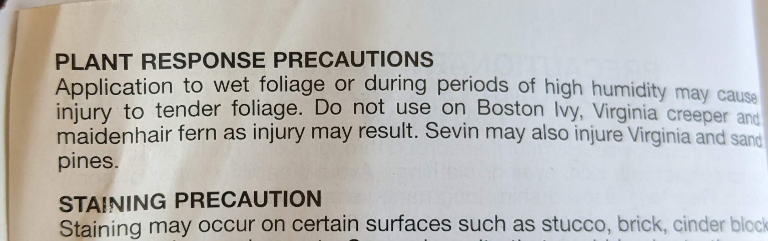 I probably should’ve realized this, but another thing I learned this week is there’s two formulations of ‘Sevin’ being sold. I don’t mention that on the print-out mentioned above. One is the traditional carbaryl that lasts 5-7 days. The other is zeta-cypermethrin which has a residual of 14 days (farmers would recognize this ingredient in Hero and Mustang Maxx). I’m not sure why the company branded both products the same name. The Sevin carbaryl product says it will ‘cause damage to boston ivy and virginia creeper’…both of which are favorites of Japanese beetles. So, that was something new I learned by reading the labels and being called out to an unfortunate incident with boston ivy. I didn’t see that same warning on the Sevin zeta-cypermethrin product, but please check it for yourself if you use it.