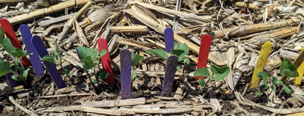 In March of 2022, six sites were dormant seeded with either Mammoth red clover (tall), Medium red clover, or Dutch white clover (low-growing, aggressive like clover in lawns). The clover eventually emerged at all the locations. All but two sites were lost due to the dry spring or June 14 hailstorms. Two sites in Clay County survived the June 7th hailstorm. The grower at those sites chose the Mammoth red clover. It was dormant seeded in March using a drill interseeder into cereal rye. The cereal rye was killed with 10 oz/ac clethodim prior to planting corn and after planting soybean. Once the clover had emerged and was at least 1” tall, Zidua was used in both the corn/clover and soybean/clover areas and was used again 3-4 weeks later. The check areas in the corn and soybean used the grower’s full herbicide program.