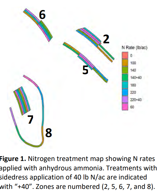 Treatments: Fall anhydrous applied November 2021. Sidedress application of 50 lb N/ac 32% UAN at V8.