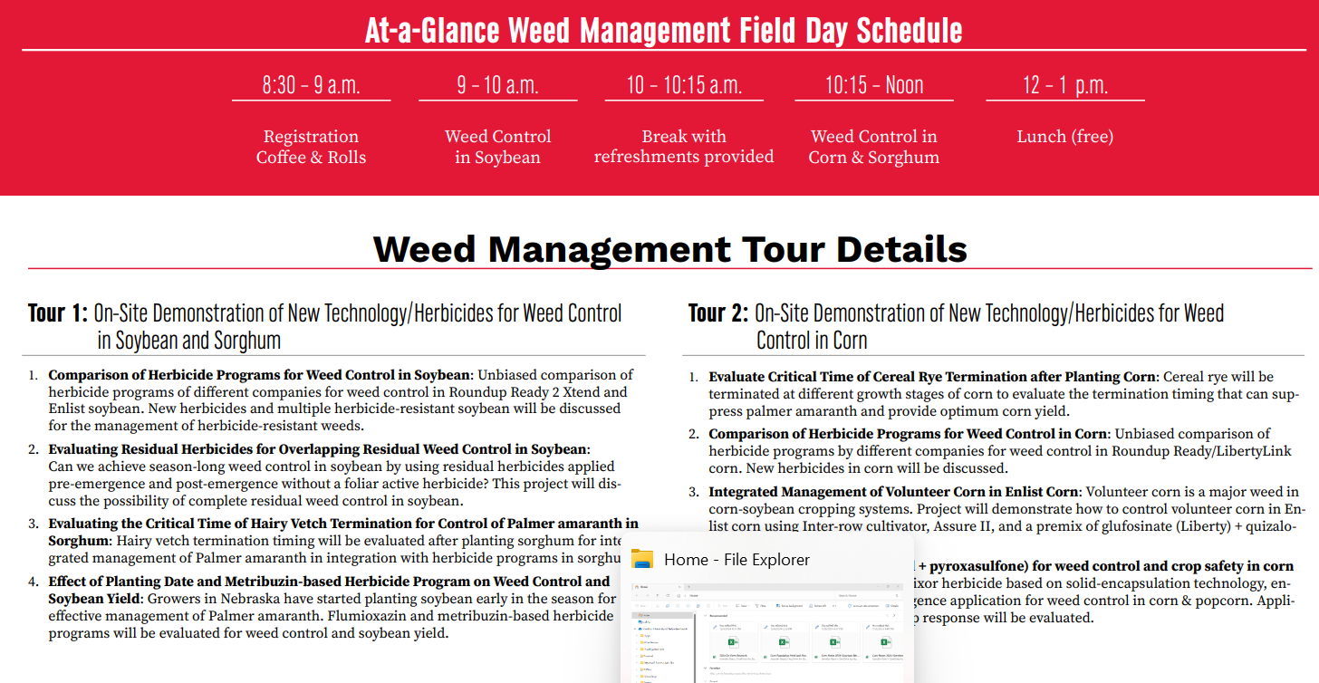 Reminder: June 25 Weed Management Field Day at UNL’s South Central Ag Lab near Clay Center, NE. Details at: https://go.unl.edu/qemk.