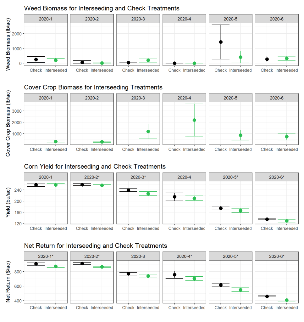 0.5 lb/ac chicory) interseeded at V5-V6 corn vs. check treatment.