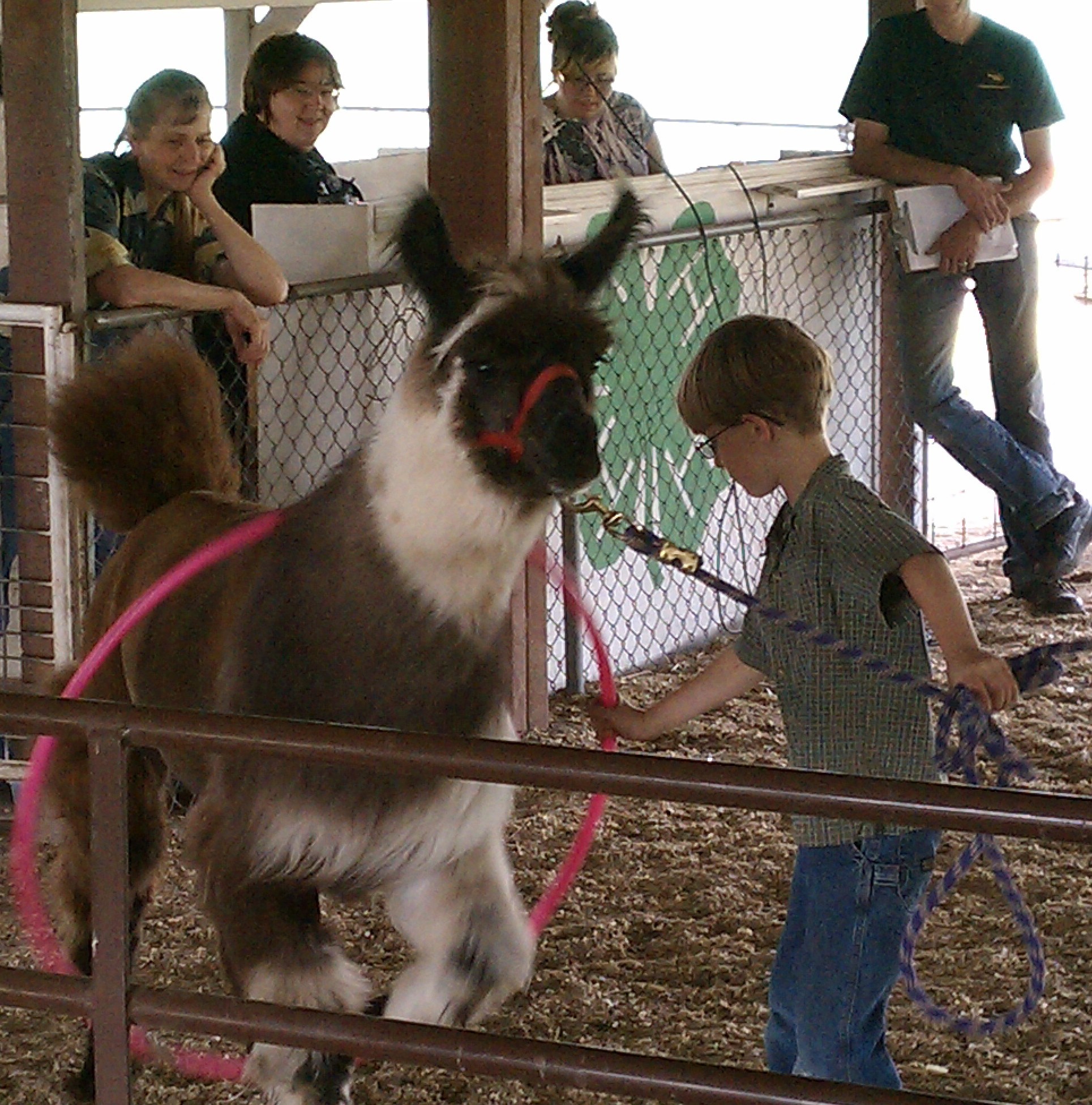 interesting part was watching the obstacle course. Essentially it’s like a glorified trail’s course for horses, only more interesting! Youth had to pick up a hula hoop and put it around his or herself then have the llama essentially walk through it. The llama had to back between logs, walk over bridges, change pace, and in different spots it had to put two feet in a ring laying on the ground and the youth had to do things like show the judge the llama’s hooves or teeth! Needless to say, it was very interesting and I think everyone watching learned a great deal!