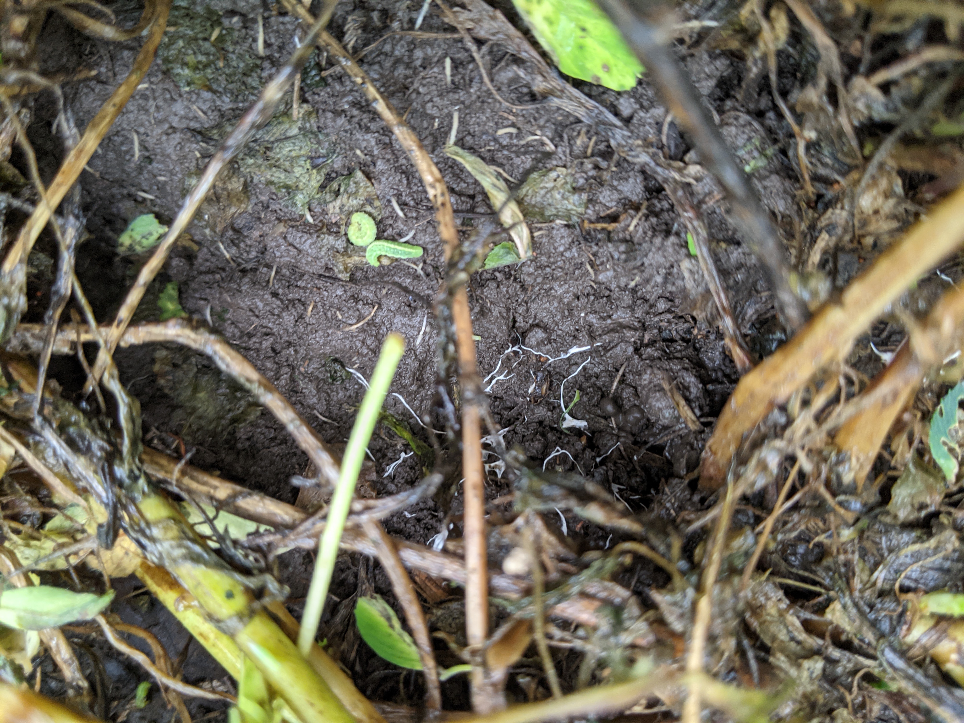 Germination of corn in York County Corn Grower plot planted April 22. Soil temperature in the field that morning was 46F with a weekend of warm air temperatures.