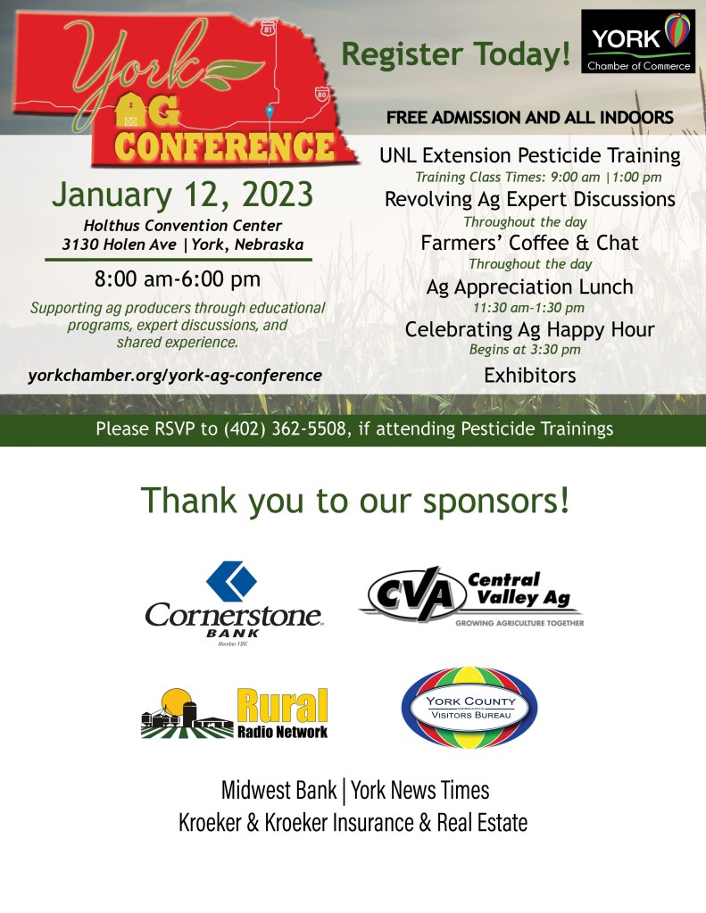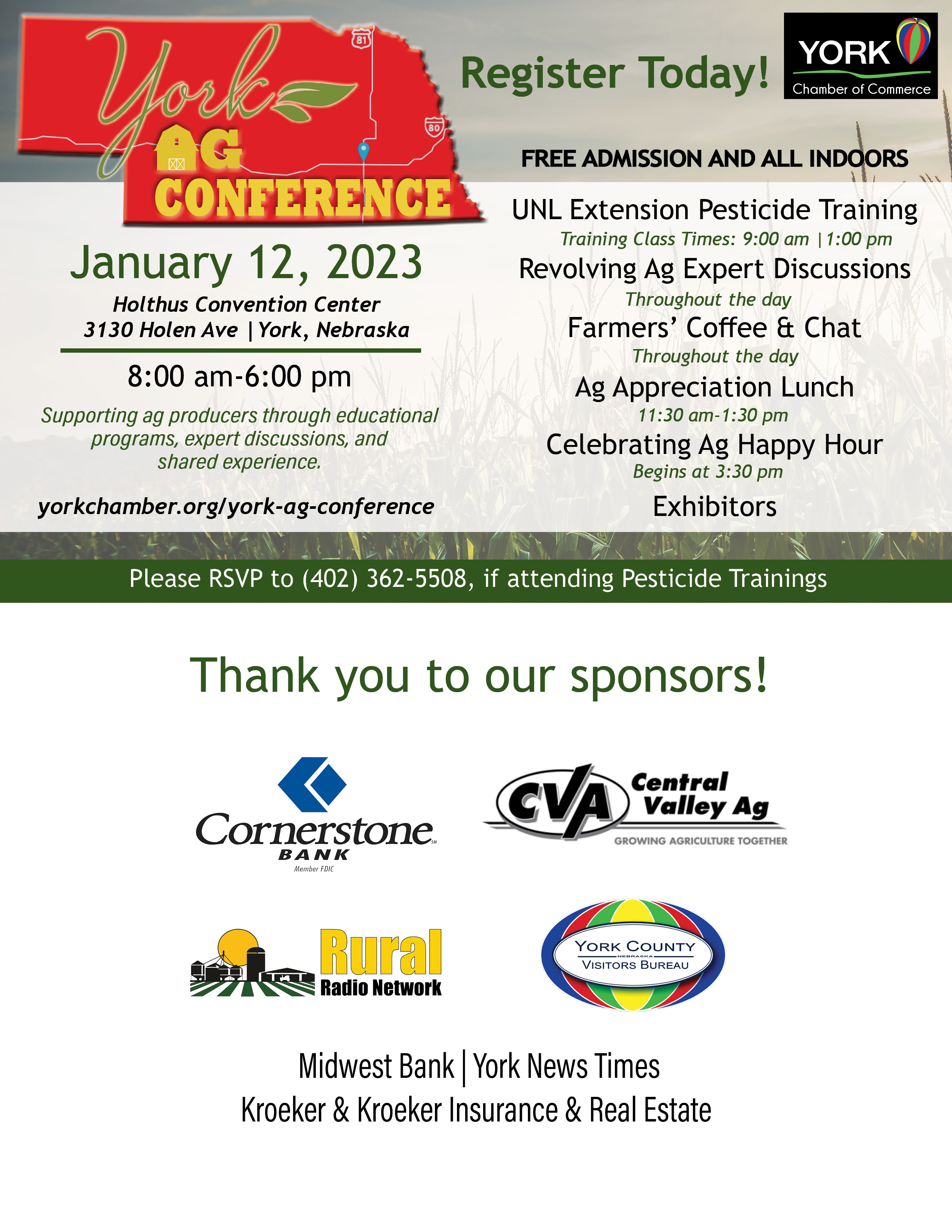 Reminder: York Ag Expo at the Holthus Convention Center in York January 10-11. Schedule of Events and Exhibitors: http://yorkchamber.org/yorkagexpo/