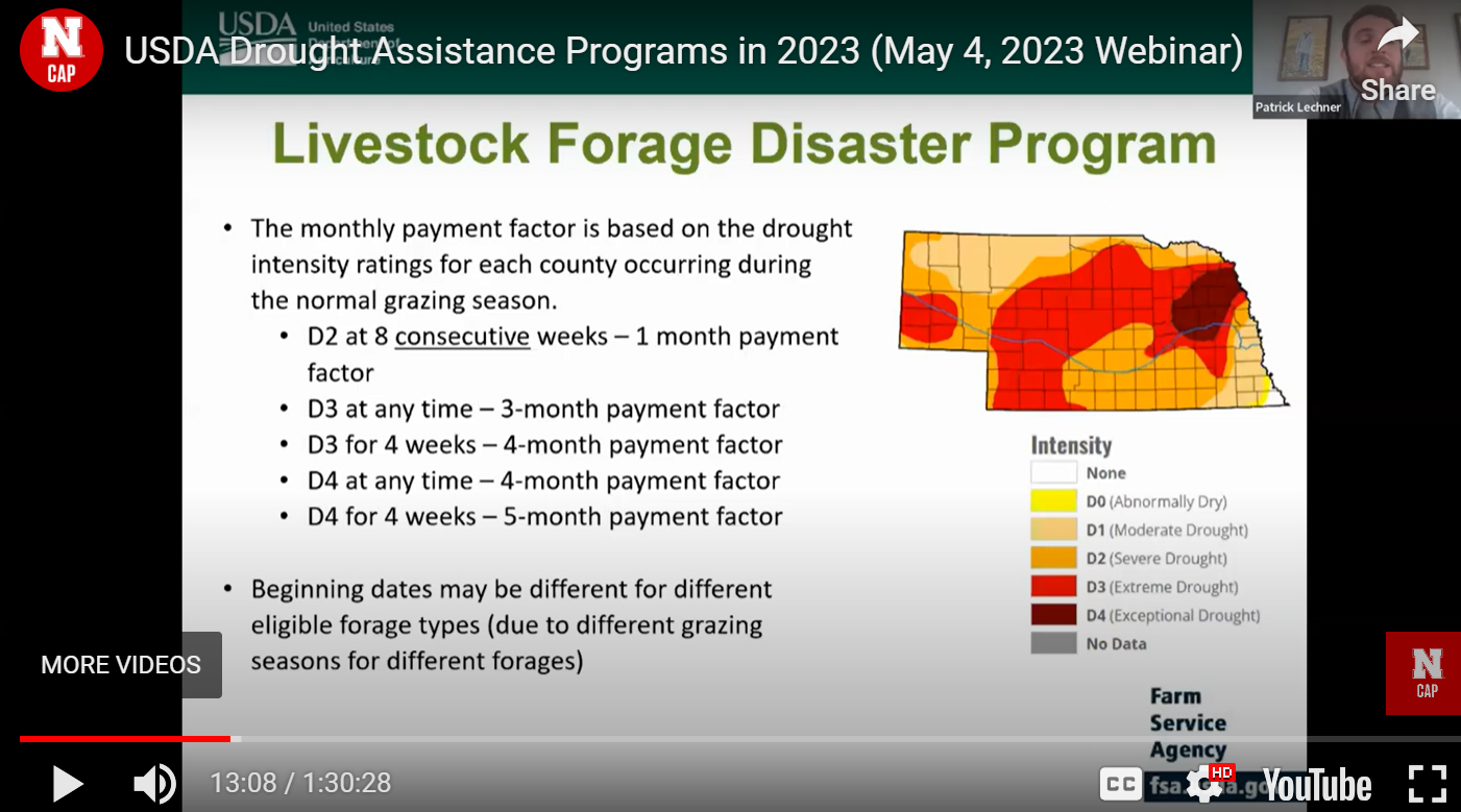 USDA FSA with Nebraska Extension held a drought assistance programs webinar earlier this month. If you missed it and wanted to learn more, you can watch the recording here: https://go.unl.edu/r24y.