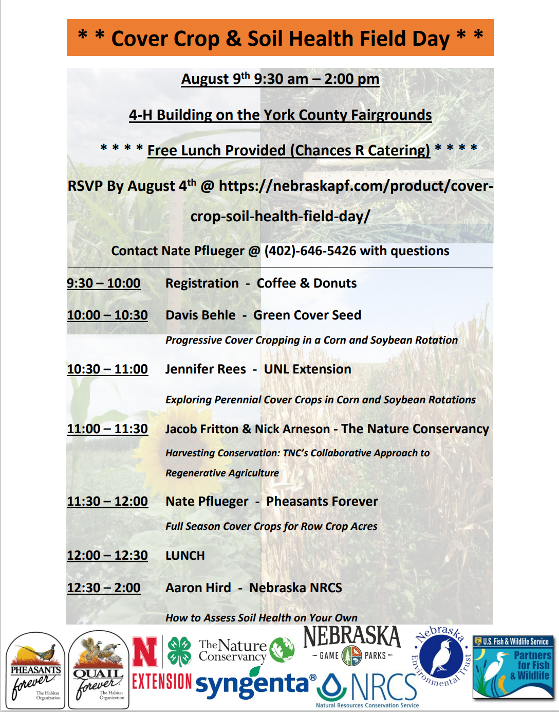 South Central Ag Lab Field Day: Please hold August 29, 2018 for UNL’s South Central Ag Lab (SCAL) Field Day near Clay Center! Attendees can choose which sessions you would like to attend. Options include the latest SCAL research in the areas of Irrigation/Water Use; Nutrient Management; Weed, Disease, and Insect Management; Cover Crops; and Cropping Systems. CCA credits will be available and there’s no charge to attend. Will have more specifics for you next week but please hold the date for now!