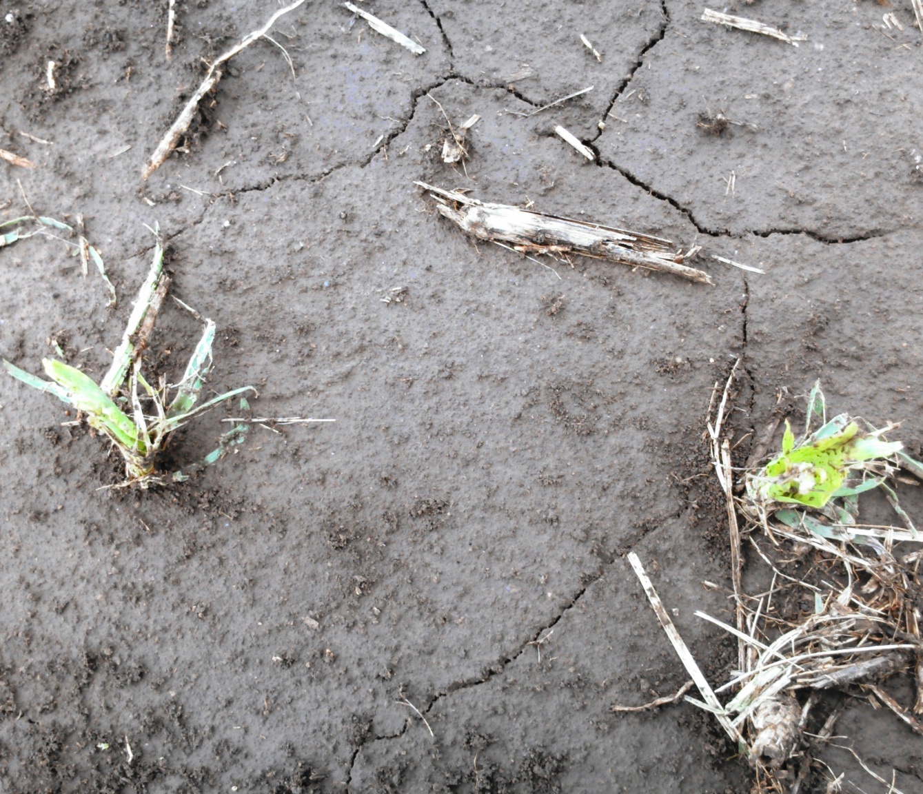 up to 1 ft. deep over the top of plants. Harrowing can help even out the field and emerged seedlings may be damaged, but the growing point for corn is still below ground at this point. For emerged beans, the growing point would be above ground so harrowing wouldn’t be a good option. With the rains again today and forecast for more in the future, I’m not even sure that harrowing is much of an option right now for corn as it will take awhile to get back into the fields. In places where 1 ft. of residue is burying plants and the inability to get to those piles with the wet conditions, I don’t expect much plant survival there.