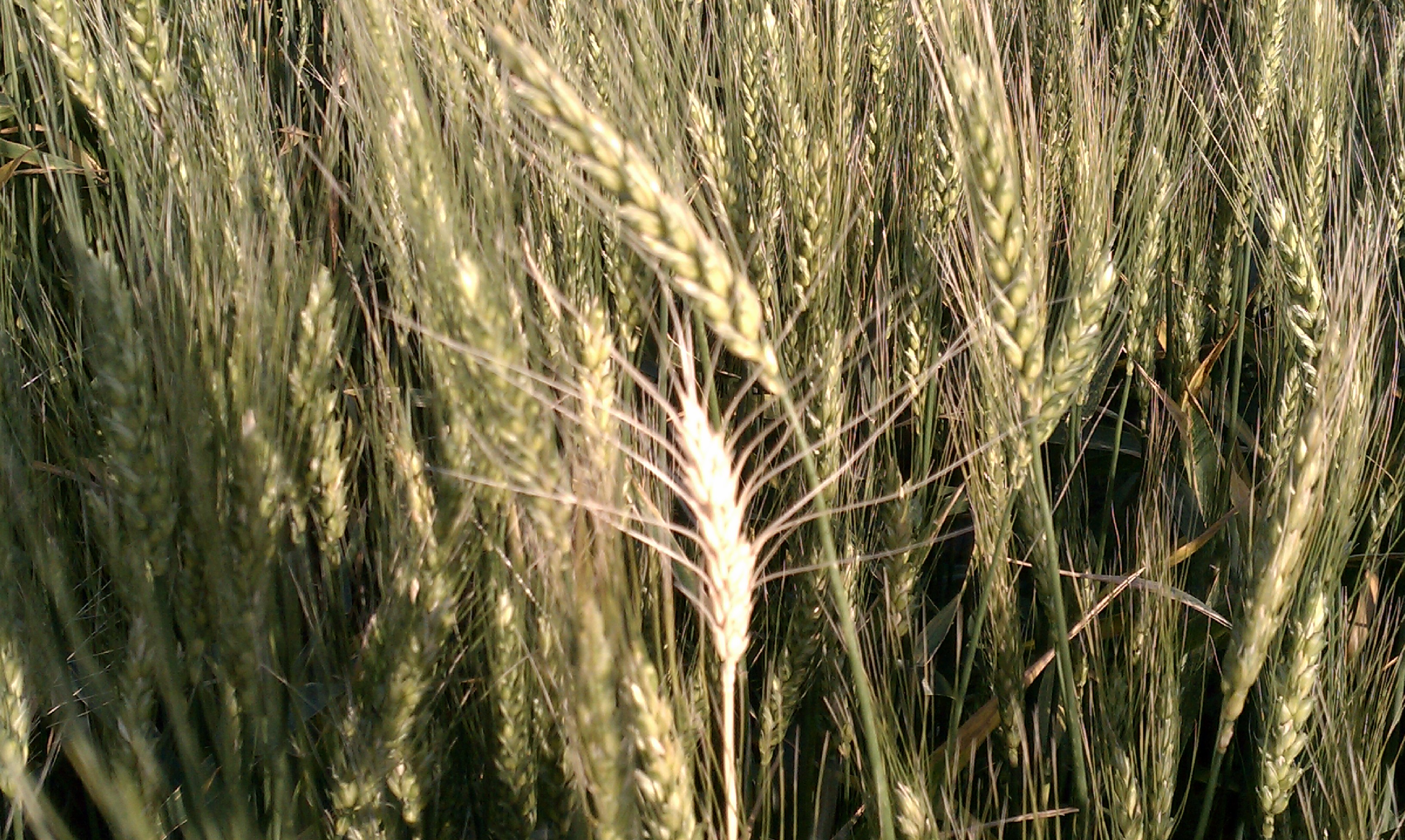 If your heads have white or pink colored kernels in them in addition to regular looking kernels, chances are the discolored kernels have Fusarium Head Blight also known as head scab. The kernels eventually may have a brown discoloration to them and the stem just below the head may also turn a brown-purple color. The Fusarium fungus that causes head scab is the same that causes stalk rot in corn. Wheat on corn
