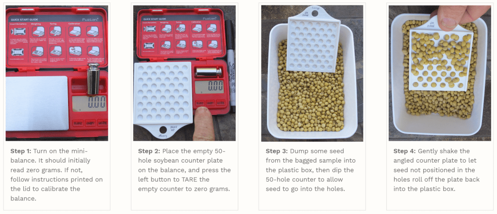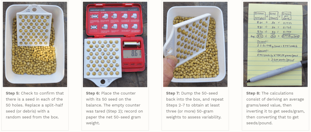 The following is how Dr. Jim Specht walks through determining soy yields just prior to harvest using seed size. These photos are via Dr. Specht.